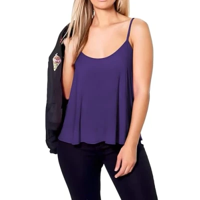 Re Tech UK Ladies New Camisole Cami Plain Strappy Swing Vest Top Flared Sleeveless, Purple, Plus Size XL 16 18