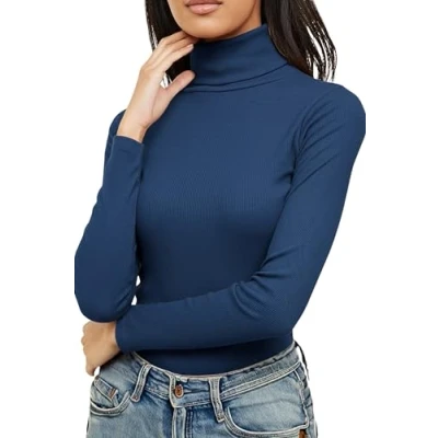 Re Tech UK Ladies Plain Ribbed Cotton Polo Turtle Roll Neck Tunic Top Jumper Full Sleeve, Classic Blue, S/M 8-10