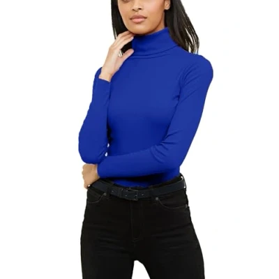 Re Tech UK Ladies Plain Ribbed Cotton Polo Turtle Roll Neck Tunic Top Jumper Full Sleeve, Royal Blue, M/L 12 14
