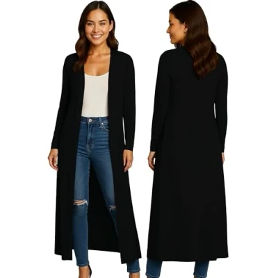 LIGHTWEIGHT & SOFT - Skin friendly cardigans for women uk, with long sleeves and an open front, Soft and comfortable fabric that drapes beautifully in sizes 8/10, 12/14, 16/18, 20/22 and 24/26. COMFORTABLE & AVAILABLE IN MANY COLOURS - Available with the finest shades of grey, green, navy blue, brown, white, red, pink, burgundy, khaki or teal. Long black cardigans for women uk will look great with a pair of jeans and your favourite shoes. GREAT LOUNGWEAR - Bring confident style to every occasion in our sleek and versatile womens coatigan. Drapes beautifully while its longer length catches the eye of everyone around you to be the perfect ladies cardigan. PERFECT FOR SUMMER - A lightweight womens cardigan is perfect to wear over any top or a dress. Its lightweight and soft fabric feels great on your skin, for total comfort. LOVELY & SOFT FABRIC - The perfect coatigan for women uk for all seasons, made from a soft, lightweight fabric. Everyone loves a good white cardigan or a long line black cardigan to hang up in the wardrobe. Versatile Year-Round Layering Piece: Designed for style and comfort, perfect for pairing with casual or formal outfits across all seasons. Premium Viscose Jersey Fabric: Soft, breathable, and wrinkle-resistant material ensures comfort and hassle-free maintenance. Elegant Waterfall Drape Design: Open front with a shawl collar enhances silhouette while offering a relaxed and sophisticated fit. Inclusive Sizing for All Women: Available in plus sizes 8-26, offering a flattering and comfortable fit for every body type. Easy Care and Durability: Machine washable on a gentle cycle; hang to dry to retain the softness and longevity of fabric.