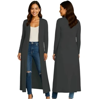 LIGHTWEIGHT & SOFT - Skin friendly cardigans for women uk, with long sleeves and an open front, Soft and comfortable fabric that drapes beautifully in sizes 8/10, 12/14, 16/18, 20/22 and 24/26. COMFORTABLE & AVAILABLE IN MANY COLOURS - Available with the finest shades of grey, green, navy blue, brown, white, red, pink, burgundy, khaki or teal. Long black cardigans for women uk will look great with a pair of jeans and your favourite shoes. GREAT LOUNGWEAR - Bring confident style to every occasion in our sleek and versatile womens coatigan. Drapes beautifully while its longer length catches the eye of everyone around you to be the perfect ladies cardigan. PERFECT FOR SUMMER - A lightweight womens cardigan is perfect to wear over any top or a dress. Its lightweight and soft fabric feels great on your skin, for total comfort. LOVELY & SOFT FABRIC - The perfect coatigan for women uk for all seasons, made from a soft, lightweight fabric. Everyone loves a good white cardigan or a long line black cardigan to hang up in the wardrobe. Versatile Year-Round Layering Piece: Designed for style and comfort, perfect for pairing with casual or formal outfits across all seasons. Premium Viscose Jersey Fabric: Soft, breathable, and wrinkle-resistant material ensures comfort and hassle-free maintenance. Elegant Waterfall Drape Design: Open front with a shawl collar enhances silhouette while offering a relaxed and sophisticated fit. Inclusive Sizing for All Women: Available in plus sizes 8-26, offering a flattering and comfortable fit for every body type. Easy Care and Durability: Machine washable on a gentle cycle; hang to dry to retain the softness and longevity of fabric.