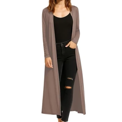 LIGHTWEIGHT & SOFT - Skin friendly cardigans for women uk, with long sleeves and an open front, Soft and comfortable fabric that drapes beautifully in sizes 8/10, 12/14, 16/18, 20/22 and 24/26. COMFORTABLE & AVAILABLE IN MANY COLOURS - Available with the finest shades of grey, green, navy blue, brown, white, red, pink, burgundy, khaki or teal. Long black cardigans for women uk will look great with a pair of jeans and your favourite shoes. GREAT LOUNGWEAR - Bring confident style to every occasion in our sleek and versatile womens coatigan. Drapes beautifully while its longer length catches the eye of everyone around you to be the perfect ladies cardigan. PERFECT FOR SUMMER - A lightweight womens cardigan is perfect to wear over any top or a dress. Its lightweight and soft fabric feels great on your skin, for total comfort. LOVELY & SOFT FABRIC - The perfect coatigan for women uk for all seasons, made from a soft, lightweight fabric. Everyone loves a good white cardigan or a long line black cardigan to hang up in the wardrobe. Versatile Year-Round Layering Piece: Designed for style and comfort, perfect for pairing with casual or formal outfits across all seasons. Premium Viscose Jersey Fabric: Soft, breathable, and wrinkle-resistant material ensures comfort and hassle-free maintenance. Elegant Waterfall Drape Design: Open front with a shawl collar enhances silhouette while offering a relaxed and sophisticated fit. Inclusive Sizing for All Women: Available in plus sizes 8-26, offering a flattering and comfortable fit for every body type. Easy Care and Durability: Machine washable on a gentle cycle; hang to dry to retain the softness and longevity of fabric.