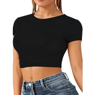 AMAZING COLOURS - This fitted short sleeve crop top offers a sleek, flattering look, available in 19 vibrant colors including white, red, black, pink, purple, green, and yellow. Combine style and comfort in a variety of shades to suit every wardrobe. THE PERFECT FIT - It's like we read your mind! This womens summer top is crafted with super stretchy fabric that moves with you easily! Dance, eat, and conquer the world in style. Warning: may cause confidence boosts and frequent mirror checks! MACHINE WASHABLE - Goodbye to washing day hassle! This top is machine washable, ensuring easy care. Toss it in, wash, and wear again—it's that simple. Durable fabric keeps its shape and color, so you can enjoy looking fabulous with zero fuss. STYLE UP FOR SUMMER - The cropped fit, short sleeves, and soft fabric make it a go-to favorite. Perfect for layering, pair it with light overshirts for a chic, breezy look or wear it solo to stay cool and stylish all season long. FUN-FILLED DAYS & NIGHTS OUT! With a comfy fit and quality fabrics, this top keeps you looking stylish and feeling great. Perfect for any adventure, its scoop neck and short sleeves let you move freely, so you can enjoy every moment in style. IDEAL FOR LAYERING IN COLD SEASONS - Transition seamlessly into autumn and winter by layering this crop top underneath blazers, cardigans, or oversized sweaters, adding a touch of style to your cold-weather outfits. Get that Y2k touch & stay on trend STYLISH & VERSATILE DESIGN: Elevate your wardrobe with this trendy crop top, perfect for casual outings, parties, or everyday wear. Easily pairs with jeans, skirts, or shorts for a chic look year-round. QUALITY FABRICS: Crafted from high-quality viscose, offering breathability, softness, and durability, ensuring all-day comfort while maintaining a polished look. EASY TO STYLE: This crop top effortlessly complements a range of wardrobe staples, from high-waisted trousers to statement jackets, making it an essential piece for building both casual and chic layered looks. MODERN CUT & FLATTERING SILHOUETTE: Tailored for a sleek, trendy fit, this crop top accentuates your shape and offers a stylish option for layering or wearing as a standalone statement piece.