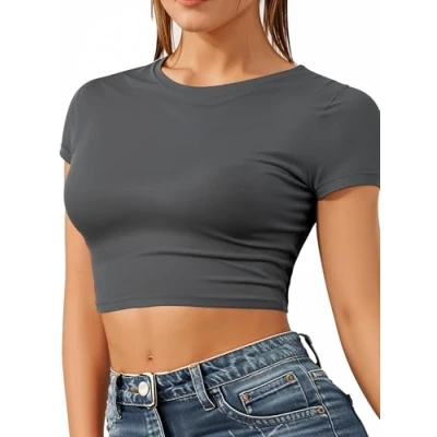 AMAZING COLOURS - This fitted short sleeve crop top offers a sleek, flattering look, available in 19 vibrant colors including white, red, black, pink, purple, green, and yellow. Combine style and comfort in a variety of shades to suit every wardrobe. THE PERFECT FIT - It's like we read your mind! This womens summer top is crafted with super stretchy fabric that moves with you easily! Dance, eat, and conquer the world in style. Warning: may cause confidence boosts and frequent mirror checks! MACHINE WASHABLE - Goodbye to washing day hassle! This top is machine washable, ensuring easy care. Toss it in, wash, and wear again—it's that simple. Durable fabric keeps its shape and color, so you can enjoy looking fabulous with zero fuss. STYLE UP FOR SUMMER - The cropped fit, short sleeves, and soft fabric make it a go-to favorite. Perfect for layering, pair it with light overshirts for a chic, breezy look or wear it solo to stay cool and stylish all season long. FUN-FILLED DAYS & NIGHTS OUT! With a comfy fit and quality fabrics, this top keeps you looking stylish and feeling great. Perfect for any adventure, its scoop neck and short sleeves let you move freely, so you can enjoy every moment in style. IDEAL FOR LAYERING IN COLD SEASONS - Transition seamlessly into autumn and winter by layering this crop top underneath blazers, cardigans, or oversized sweaters, adding a touch of style to your cold-weather outfits. Get that Y2k touch & stay on trend STYLISH & VERSATILE DESIGN: Elevate your wardrobe with this trendy crop top, perfect for casual outings, parties, or everyday wear. Easily pairs with jeans, skirts, or shorts for a chic look year-round. QUALITY FABRICS: Crafted from high-quality viscose, offering breathability, softness, and durability, ensuring all-day comfort while maintaining a polished look. EASY TO STYLE: This crop top effortlessly complements a range of wardrobe staples, from high-waisted trousers to statement jackets, making it an essential piece for building both casual and chic layered looks. MODERN CUT & FLATTERING SILHOUETTE: Tailored for a sleek, trendy fit, this crop top accentuates your shape and offers a stylish option for layering or wearing as a standalone statement piece.