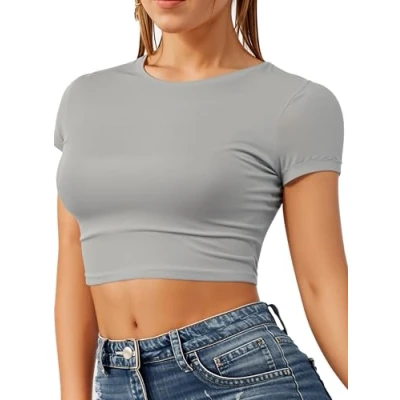AMAZING COLOURS - This fitted short sleeve crop top offers a sleek, flattering look, available in 19 vibrant colors including white, red, black, pink, purple, green, and yellow. Combine style and comfort in a variety of shades to suit every wardrobe. THE PERFECT FIT - It's like we read your mind! This womens summer top is crafted with super stretchy fabric that moves with you easily! Dance, eat, and conquer the world in style. Warning: may cause confidence boosts and frequent mirror checks! MACHINE WASHABLE - Goodbye to washing day hassle! This top is machine washable, ensuring easy care. Toss it in, wash, and wear again—it's that simple. Durable fabric keeps its shape and color, so you can enjoy looking fabulous with zero fuss. STYLE UP FOR SUMMER - The cropped fit, short sleeves, and soft fabric make it a go-to favorite. Perfect for layering, pair it with light overshirts for a chic, breezy look or wear it solo to stay cool and stylish all season long. FUN-FILLED DAYS & NIGHTS OUT! With a comfy fit and quality fabrics, this top keeps you looking stylish and feeling great. Perfect for any adventure, its scoop neck and short sleeves let you move freely, so you can enjoy every moment in style. IDEAL FOR LAYERING IN COLD SEASONS - Transition seamlessly into autumn and winter by layering this crop top underneath blazers, cardigans, or oversized sweaters, adding a touch of style to your cold-weather outfits. Get that Y2k touch & stay on trend STYLISH & VERSATILE DESIGN: Elevate your wardrobe with this trendy crop top, perfect for casual outings, parties, or everyday wear. Easily pairs with jeans, skirts, or shorts for a chic look year-round. QUALITY FABRICS: Crafted from high-quality viscose, offering breathability, softness, and durability, ensuring all-day comfort while maintaining a polished look. EASY TO STYLE: This crop top effortlessly complements a range of wardrobe staples, from high-waisted trousers to statement jackets, making it an essential piece for building both casual and chic layered looks. MODERN CUT & FLATTERING SILHOUETTE: Tailored for a sleek, trendy fit, this crop top accentuates your shape and offers a stylish option for layering or wearing as a standalone statement piece.
