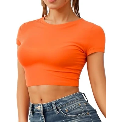 AMAZING COLOURS - This fitted short sleeve crop top offers a sleek, flattering look, available in 19 vibrant colors including white, red, black, pink, purple, green, and yellow. Combine style and comfort in a variety of shades to suit every wardrobe. THE PERFECT FIT - It's like we read your mind! This womens summer top is crafted with super stretchy fabric that moves with you easily! Dance, eat, and conquer the world in style. Warning: may cause confidence boosts and frequent mirror checks! MACHINE WASHABLE - Goodbye to washing day hassle! This top is machine washable, ensuring easy care. Toss it in, wash, and wear again—it's that simple. Durable fabric keeps its shape and color, so you can enjoy looking fabulous with zero fuss. STYLE UP FOR SUMMER - The cropped fit, short sleeves, and soft fabric make it a go-to favorite. Perfect for layering, pair it with light overshirts for a chic, breezy look or wear it solo to stay cool and stylish all season long. FUN-FILLED DAYS & NIGHTS OUT! With a comfy fit and quality fabrics, this top keeps you looking stylish and feeling great. Perfect for any adventure, its scoop neck and short sleeves let you move freely, so you can enjoy every moment in style. IDEAL FOR LAYERING IN COLD SEASONS - Transition seamlessly into autumn and winter by layering this crop top underneath blazers, cardigans, or oversized sweaters, adding a touch of style to your cold-weather outfits. Get that Y2k touch & stay on trend STYLISH & VERSATILE DESIGN: Elevate your wardrobe with this trendy crop top, perfect for casual outings, parties, or everyday wear. Easily pairs with jeans, skirts, or shorts for a chic look year-round. QUALITY FABRICS: Crafted from high-quality viscose, offering breathability, softness, and durability, ensuring all-day comfort while maintaining a polished look. EASY TO STYLE: This crop top effortlessly complements a range of wardrobe staples, from high-waisted trousers to statement jackets, making it an essential piece for building both casual and chic layered looks. MODERN CUT & FLATTERING SILHOUETTE: Tailored for a sleek, trendy fit, this crop top accentuates your shape and offers a stylish option for layering or wearing as a standalone statement piece.