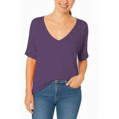 V-Neck, V-Chic! – Elevate your everyday look with our women's t-shirts featuring a stylish V-neckline. Made for effortless elegance, this womens oversized t shirt drapes perfectly , offering a relaxed & flattering fit that compliments any body shape. Breezy & Easy! – Stay cool and confident in this lightweight, breathable fabric—perfect for warmer days! Whether you're layering or wearing solo, our v neck t shirts for women UK are an essential addition to any summer wardrobe. Oversized, Overjoyed! – Designed for all-day comfort, this tee shirt for women UK offers a loose, flowy fit for effortless wear. Whether you're out or lounging, enjoy unrestricted movement with a relaxed yet stylish look. Loose, but Luxe! – This ultra-soft, loose top for women UK blends fashion with function. Crafted from premium fabric, it feels as good as it looks—ideal for pairing with denim shorts, leggings, or skirts for a casual yet trendy outfit. Casual, but Cool! – This womens oversized t shirt is a versatile must-have. Pair it with trainers for a laid-back vibe or accessorize for a stylish touch—your perfect go-to for effortless, everyday fashion.