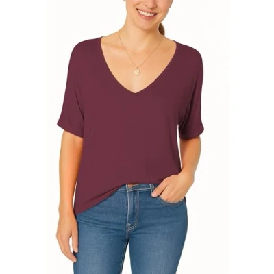 Re Tech UK Womens Oversize Fit V Neck Top Ladies Baggy Plus Size Batwing Turn Up Sleeve Casual T Shirt Sizes 8 26 (Wine, 20 22 XXL)