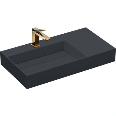 General description We present you a beautiful, extremely functional and modern washbasin. It is a product that will perfectly fill your bathroom space while maintaining an impeccable appearance and aesthetics. The washbasin is made of high-quality snow-white conglomerate, characterized by exceptional durability against mechanical damage, scratches, and high temperatures. Solid and careful workmanship ensures comfortable and safe use. In addition to its excellent durability, the conglomerate is very easy to clean, making it a simple choice for those who appreciate aesthetics and simplicity. Technical specifications Color: Grey Matt Material: Conglomerate Overflow opening: 0 Faucet hole: Yes Drain hole diameter: 45 mm Mounting method: Wall-hung, Countertop Washbasin depth: 100 mm Washbasin height: 140 mm Washbasin length: 750 mm Washbasin width: 430 mm Width range: 350-399 mm Length range: 600+ mm Warranty: 24 months Compatibility and accessories Appropriate plugs, batteries, and