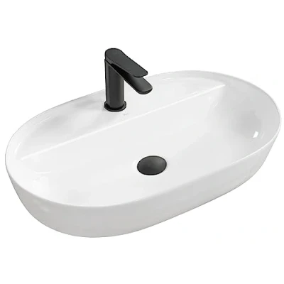 AmazonIt is adapted for mounting on a countertop or cabinet. Mounting method: countertop. Color: snow white. External dimensions (length x width x height): 605 x 405 x 135 mm. Material: sanitary ceramics. Hole of the tap: yes. Overflow hole: no. Diameter of drain hole: 45 mm., Manufacturer: Rea