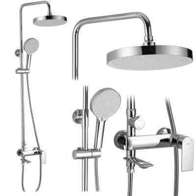 General description A shower set designed with comfort and functionality in mind. Thanks to a special production phase, the set guarantees maximum safety and comfort in everyday use. Unique design and high quality of materials used guarantee durability and reliability for many years. Technical specifications Height: 1400 mm Colour: Chrome Material: Brass / ABS Warranty: 24 months Type: Shower-Bath (with spout) Valve: Ceramic Control Valve: 3-way Nozzle system: Anti-Calc Compatibility and accessories Included: Concealed installation mixer Overhead shower Rain shower rail Spout 1500 mm hose Handset Handset holder Cover plates Installation Assembly and installation: Surface
