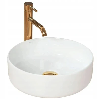 AmazonThe washbasin is made of high-quality sanitary ceramics. Thanks to a special production phase, it is durable and easy to keep clean. Sami is a washbasin that is mounted directly on the countertop, so you can arrange your bathroom while saving a lot of space. Mounting method: countertop. Color: white. External dimensions (diameter x height): Ø370 x 135 mm. Material: sanitary ceramics. Hole of the tap: no. Overflow hole: no. Diameter of the drain hole: 45 mm., Weight: 16.975594174 Pounds, Manufacturer: Rea