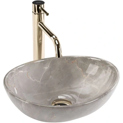 General description A washbasin with a unique look and functionality of the highest level. If you want to add elegance and simplicity to your bathroom, the Rea Sofia washbasin is just for you. This product is made of high quality sanitary ceramics. Technical specifications Material: Sanitary ceramics Colour: Stone imitation Washbasin length: 350 mm Washbasin width: 260 mm Washbasin depth: 100 mm Washbasin height: 125 mm Drain hole diameter: 45 mm Overflow opening: 0 Mounting method: Countertop Faucet hole: No Warrants: 24 months