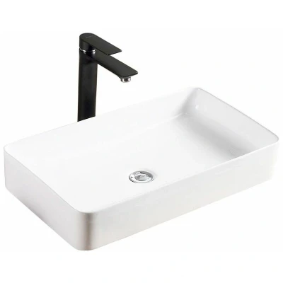 General description Beautiful, extremely functional, and modern washbasin. This product will perfectly fit the space while maintaining the flawless appearance of your bathroom. The sink is suitable for mounting on a vanity counter or cabinet. It is made out of high-quality sanitary ware, durable and easy to clean. Technical specifications Mounting method: countertop Length: 61.5 cm Width: 35 cm Height: 11 cm Depth: 9 cm Material: sanitary ceramics Faucet hole: no Overflow opening: no Drain hole diameter: 45 mm Warranty: 2 years Manufacturer: Rea