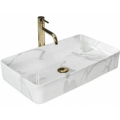 REA U5896 Bathroom Sink Made of creamic Denis Marmo Shiny pattern U5896, White Imitation Marble