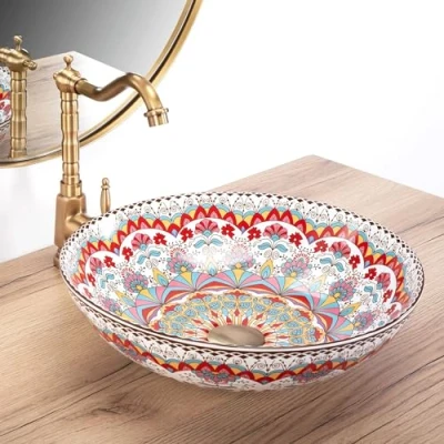 AmazonThe washbasin is made of high-quality sanitary ceramics. Thanks to the special production phase, it is durable and easy to keep clean. The use of a countertop washbasin allows you to organize the space on the countertop in a convenient way by arranging all the necessary accessories. Mounting method: countertop. Color: pattern. External dimensions (diameter x dimensions): Ø400 x 115 mm. Material: sanitary ceramics. Hole of the tap: no. Overflow hole: no. Diameter of the drain hole: 45 mm., Weight: 11.5081300764 pounds, Manufacturer: Rea