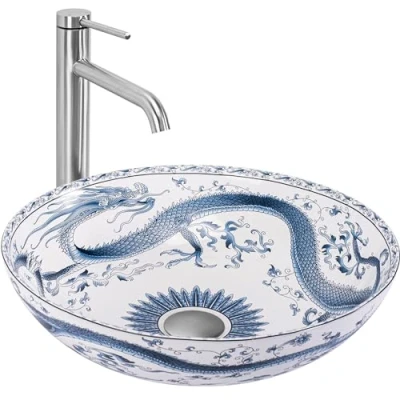 AmazonThe washbasin is made of high-quality sanitary ceramics. Thanks to the special production phase, it is durable and easy to keep clean. The use of a countertop washbasin allows you to organize the space on the countertop in a convenient way by arranging all the necessary accessories. Mounting method: countertop. Color: pattern. External dimensions (diameter x height): Ø400 x 115 mm. Material: sanitary ceramics. Hole of the tap: no. Overflow hole: no. Diameter of the drain hole: 45 mm., Weight: 11.6404074336 pounds, Manufacturer: Rea