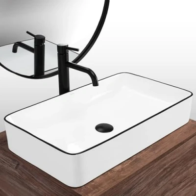 AmazonIts modern, yet classic form means that it can be installed in almost any bathroom. Mounting method: countertop. Color: black/white. External dimensions (length x width x height): 615 x 350 x 110 mm. Material: sanitary ceramics. Hole of the tap: no. Overflow hole: no. Diameter of drain hole: 45 mm., Weight: 25.3972525824 pounds, Manufacturer: Rea