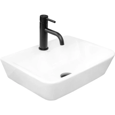 General description Beautiful, extremely functional, and modern washbasin. This product will perfectly fit the space while maintaining the flawless appearance of your bathroom. The sink is suitable for mounting on a vanity counter or cabinet. It is made out of high-quality sanitary ware, durable and easy to clean.