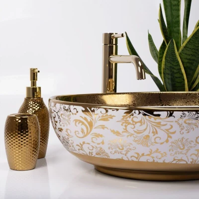 REA U9650 Bathroom Sink Made of Ceramic Margot white/gold U9650, White