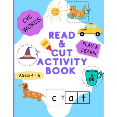 Read & Cut Activity Book: CVC words cutting and sticking activities Ages 4 6 Kids colouring book