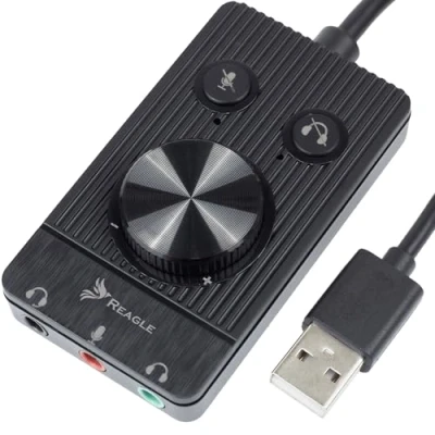High quality audio: Enjoy crystal clear sound reproduction with 48kHz/16-bit sampling, perfect for demanding applications such as video conferencing, music recording and gaming. Experience a significant improvement compared to built-in sound cards VERSATILE CONNECTIONS: Three 3.5 mm jack ports offer maximum flexibility: a 2-in-1 headphone and microphone port, a dedicated microphone input and a separate headphone output. Ideal for various audio setups and multitasking EASY TO USE AND COMPATIBILITY: Plug & Play with seamless compatibility with Windows, Mac OS and Linux without the need for driver installation. Ready to use to enhance your audio experiences no matter what operating system you use Compact and portable design: the compact design of the Reagle RYA5 external USB sound card makes it an ideal companion for on the go. Easy to carry and store, it fits easily in any backpack or bag, perfect for on the go USER-FRIENDLY CONTROL: Benefit from a built-in volume control and physical mute buttons for microphone and headphones. These features give you maximum control and allow easy handling, ideal for participating in video conferences or listening to music