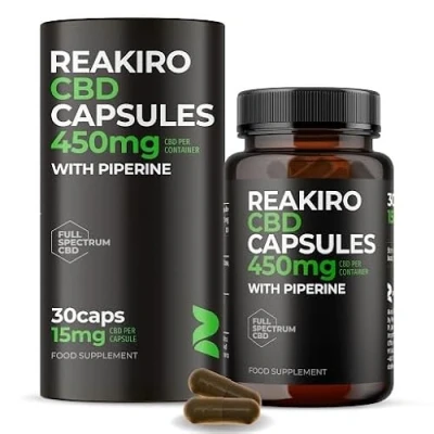 ⚡ Rapid CBD Absorption: Each of our expertly crafted capsules delivers a precise dose of 15mg of CBD, designed for swift absorption. This formulation allows you to feel the effects quickly, offering the benefits you seek without delay. 💊 Enhanced Bioavailability: Our capsules are enriched with piperine extract, a potent ingredient that supercharges the absorption of cannabidiol. This enhancement allows your body to fully utilize and experience the myriad benefits that CBD oil has to offer. 🧬 Piperine-Powered for Maximum Effectiveness: Unleash the remarkable benefits of piperine, a powerful compound extracted from the black pepper, skillfully incorporated into our capsules to enhance the absorption of CBD. This carefully crafted blend not only elevates the effectiveness of each dose but also ensures that you experience the entire spectrum of its benefits. 🌱 100% Vegan: Reakiro's CBD capsules are entirely free from animal-derived ingredients. They're an excellent option for those dedicated to a vegan lifestyle, enabling you to uphold your values and experience the amazing benefits of CBD. 🕒 Long-Lasting Stability: Our capsules are meticulously crafted to preserve their potency and stability throughout their entire shelf life. This means you can rely on consistent quality and effectiveness with every capsule, ensuring peace of mind with each use.