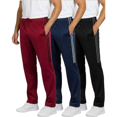 Real Essentials 3 Pack: Men's Active Athletic Casual Tricot Open Bottom Sweatpants with Pockets, Set 6, Large