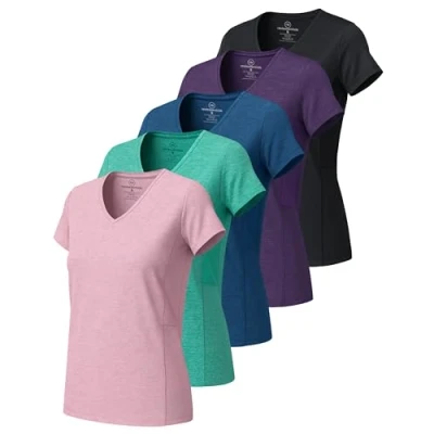 Performance Dry Fit Fabric: Stay cool and confident in these moisture-wicking workout tops for women, designed with breathable polyester-spandex that keeps sweat away during fitness, pilates, yoga, hiking, pickleball, tennis, zumba, or dance. Versatile Activewear Style: From athletic yoga outfits to gym-inspired sets, these short sleeve V neck tees double as casual athleisure shirts perfect for running, golf, football, or lounge wear—your all-day fitness clothing solution. Comfortable & Flattering Fit: Lightweight and flowy yet modest, these women’s tees move with you whether you prefer a loose top, cooling rash guard, or fitted activewear look. Perfect for exercise, sports, and stylish athleisure outfits. Everyday Function & Protection: These active t-shirts are ideal for summer sports, hot pink statement looks, or sun protection tops with SPF qualities, offering breathable comfort that transitions seamlessly from gym to errands. 5-Pack Value for Every Activity: Stock up on inspired workout tops—this multi-pack of women’s dry fit shirts ensures you always have the right outfit for workouts, athleisure, or everyday exercise clothing.