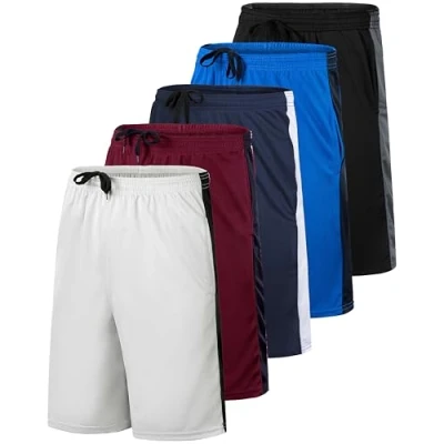 DESIGNED FOR COMFORT AND PERFORMANCE Our men's mesh shorts are made with a breathable and moisture-wicking fabric that keeps you cool and dry during any activity. With an adjustable drawstring waist and a comfortable fit, these shorts are perfect for any workout or athletic event, like a basketball game or running. Enjoy versatility and convenience: With our 5 pack men's mesh shorts, you can enjoy the benefits of having multiple pairs of high-quality shorts at an affordable price. These shorts are perfect for any activity from basketball and football to running and fitness. With the included pockets, you can take your essentials anywhere. FEATURES The mesh shorts for men feature a quick dry fabric that ensures you stay dry and comfortable all day long. These shorts also have a stretchy and loose 9" inseam that provides maximum range of motion and flexibility. The variety of colors allows you to pair them with any shirt or sports gear. GREAT GIFT IDEA Looking for the perfect gift for the sporty man in your life? Our 5 pack mesh shorts for men are an excellent choice. With a variety of colors and sizes to choose from, these shorts are a practical and stylish gift for any occasion. Real Essentials Commitment to the family: At Real Essentials we believe in providing high-quality clothing options for hard-working families at an affordable price. Our 5 pack mesh shorts for men will take your dollar further and give you multiple options for any activity. Whether you're heading to the gym or just lounging around, our men's mesh shorts are the perfect addition to your activewear collection.