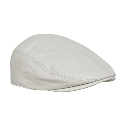 Real Leather Flat Cap Newsboy Ivy Peaked Gatsby Golf Cabbie Hat (White, 59)