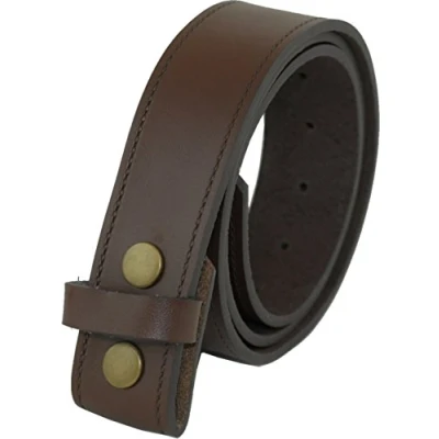 Real Leather Press Stud Belt 40mm wide for Jeans Brown XL (40" 44")