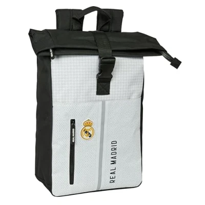 Real Madrid 1st Team 24/25 Backpack with Flap for 15.6 Inch Laptop, Ideal Various Ages, Comfortable and Versatile, Quality Strength, 28 x 13 42 cm, White/Grey,