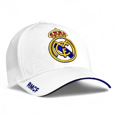 Plain white with coloured crest and blue lettering Officially Licensed Real Madrid Cap Official accessory of the Real Madrid White cap with crest and details in navy blue. Baseball Cap