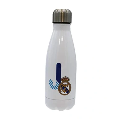 Real Madrid Stainless Steel Water Bottle, Airtight Closure, with Letter J Design in Blue, 550 ml, White, Official Product (CyP Brands)