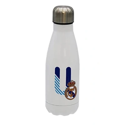 Real Madrid Stainless Steel Water Bottle, Airtight Closure, with Letter U Design in Blue, 550 ml, White, Official Product (CyP Brands)