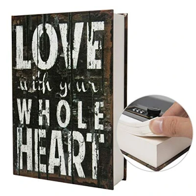 Real Paper Diversion Book Safe Storage Box, Dictionary Secret with Code Lock/Key, flip Hidden (M Combination, LOVE)