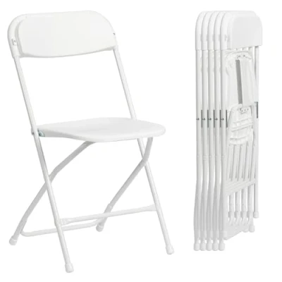 Sturdy and High Quality: This folding chair is made of high quality plastic and thickened steel tubing that is strong enough to hold up to 350 lbs. There is a tube underneath the seat for added Easy and Convenient Storage: The folding design allows for easy storage and transportation, making it a practical choice for spaces of all sizes. When not in use, these chairs can be folded flat to Non-Slip Rubber Foot Pads: Rubber feet prevent damage to the floor and help hold the chair in place while minimizing scuffs. Our plastic folding chairs are perfect for entertaining guests in your Comfortable Seating Experience: Our chairs are ergonomically designed to maintain a comfortable seating experience even after prolonged use. Whether it's a long meeting, a family gathering or a Versatile Use: Suitable for a variety of occasions including weddings, corporate events, school events, banquets and outdoor events. The classic white and black color complements any decor