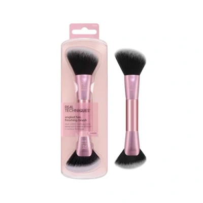 Real Techniques Angled Fan Finishing Brush adds soft definition to your cheekbones, jawline and hairline Sculpt, blend, and diffuse with ease for a seamless, even finish Makeup brush features dual-ended heads to precisely apply and diffuse liquid, cream, and powder formulas Angled precision head is dense to blend liquid and cream bronzer, contour, and blush Fluffy fan-shaped head helps you diffuse cream and layer makeup with powder contour, blush and bronzer for ultimate staying power