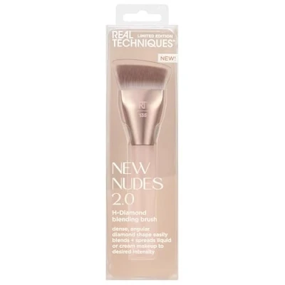 Real Techniques New Nudes 2.0 H-Diamond Blending Brush is a multitasker that creates customizable coverage and blends for a seamless base Foundation brush features a dense, angular diamond-shaped head to apply and blend makeup to your desired intensity Face makeup brush is best used with liquid and cream makeup Apply your favorite foundation, blush, or contour with precision Brush head features a unique, pointed edge for defining and sculpting the face UltraPlush, custom-cut, synthetic bristles that make for soft and seamless makeup application