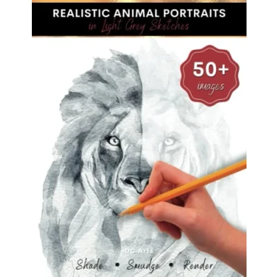 Realistic Animal Portraits in Light Grey Sketches: Drawing Book for Kids and Teens