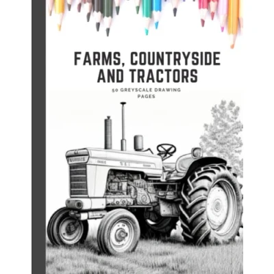 Realistic Farm and Tractor Sketches in Light Grey Scale: A Drawing Book for Kids, Adults Teens: Farm, Countryside GreyScale Colouring