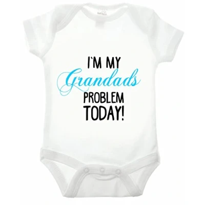 Reality Glitch I'm My Grandads Problem Short Sleeve Blue Text Babygrow (0 3mths, White)