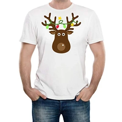 Reality Glitch Men's Christmas Reindeer T Shirt (XX Large, White)
