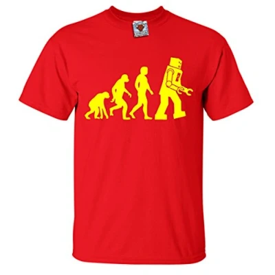 Reality Glitch Men's Evolution of Robots T Shirt (L, Red)