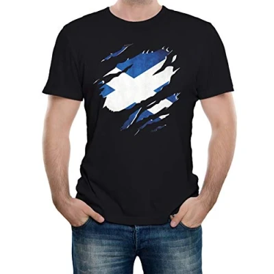 Reality Glitch Men's Torn Scotland Flag Scottish Gift T Shirt (Large, Black)