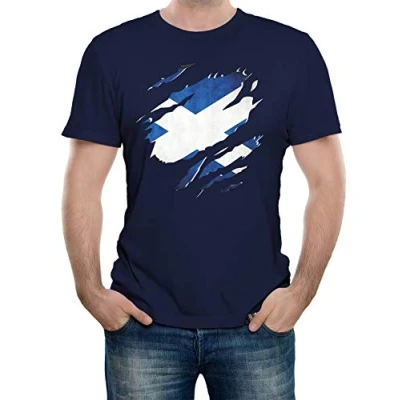Reality Glitch Men's Torn Scotland Flag Scottish Gift T Shirt (XX Large, Navy Blue)