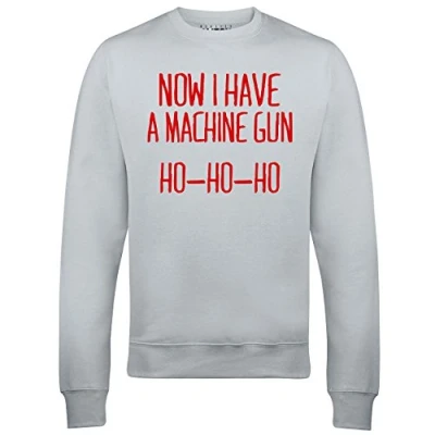 Reality Glitch Now I Have a Machine Gun Ho-Ho-Ho Sweatshirt (Medium, Light Grey)