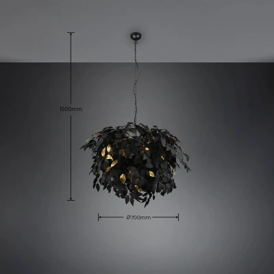 Reality Leuchten Leavy hanging light, black/gold, Ø 70 cm, plastic