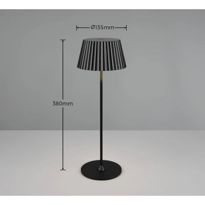 Suarez LED battery table lamp in matt black metal. Thanks to the protection class IP44, the light can be used both indoors and outdoors Includes energy-saving 1.5 watt LED with an average life of 25000 hours and maximum 200 lumens brightness The sensor dimmer allows the brightness to be switched in three different levels and the light can be switched off The light is charged via the included charging station with USB-C port. Charging requires approx. 4.5 hours. When fully charged, the light duration is approx. 6 hours This product is a surrounding product. Surrounding products are lights that can be disassembled for separate verification of the included light source(s). This product contains a light source of energy efficiency class F